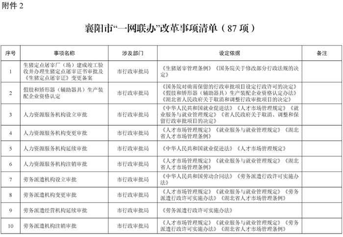 2.襄阳市“一网联办”改革事项清单(87项)