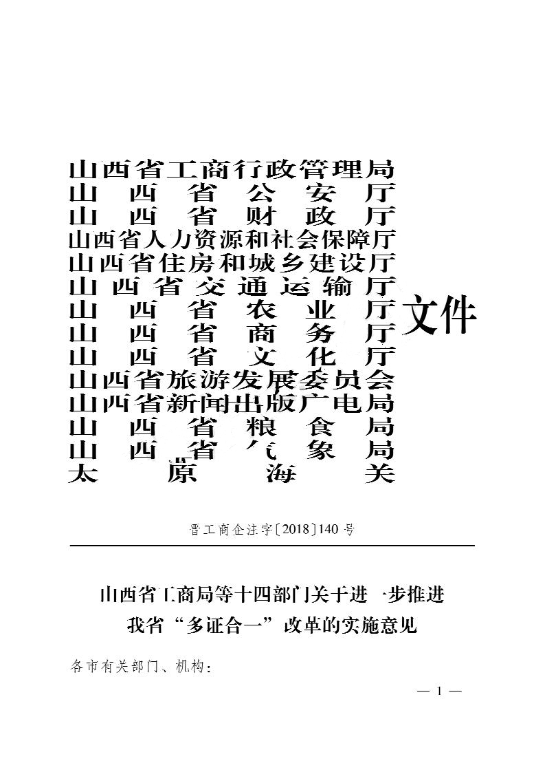 山西省工商局等十四部门关于进一步推进我省 “多证合一”改革的实施意见
