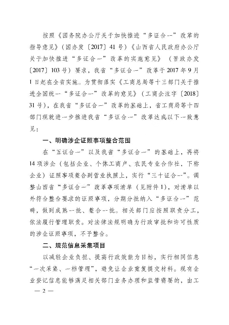 山西省人民政府办公厅关于加快推进“多证合一”改革的...