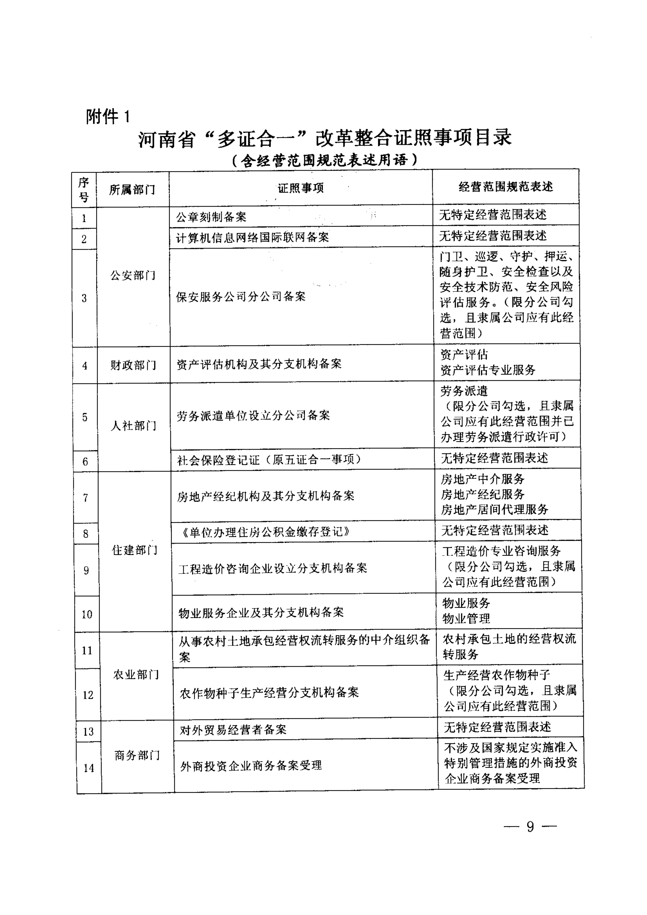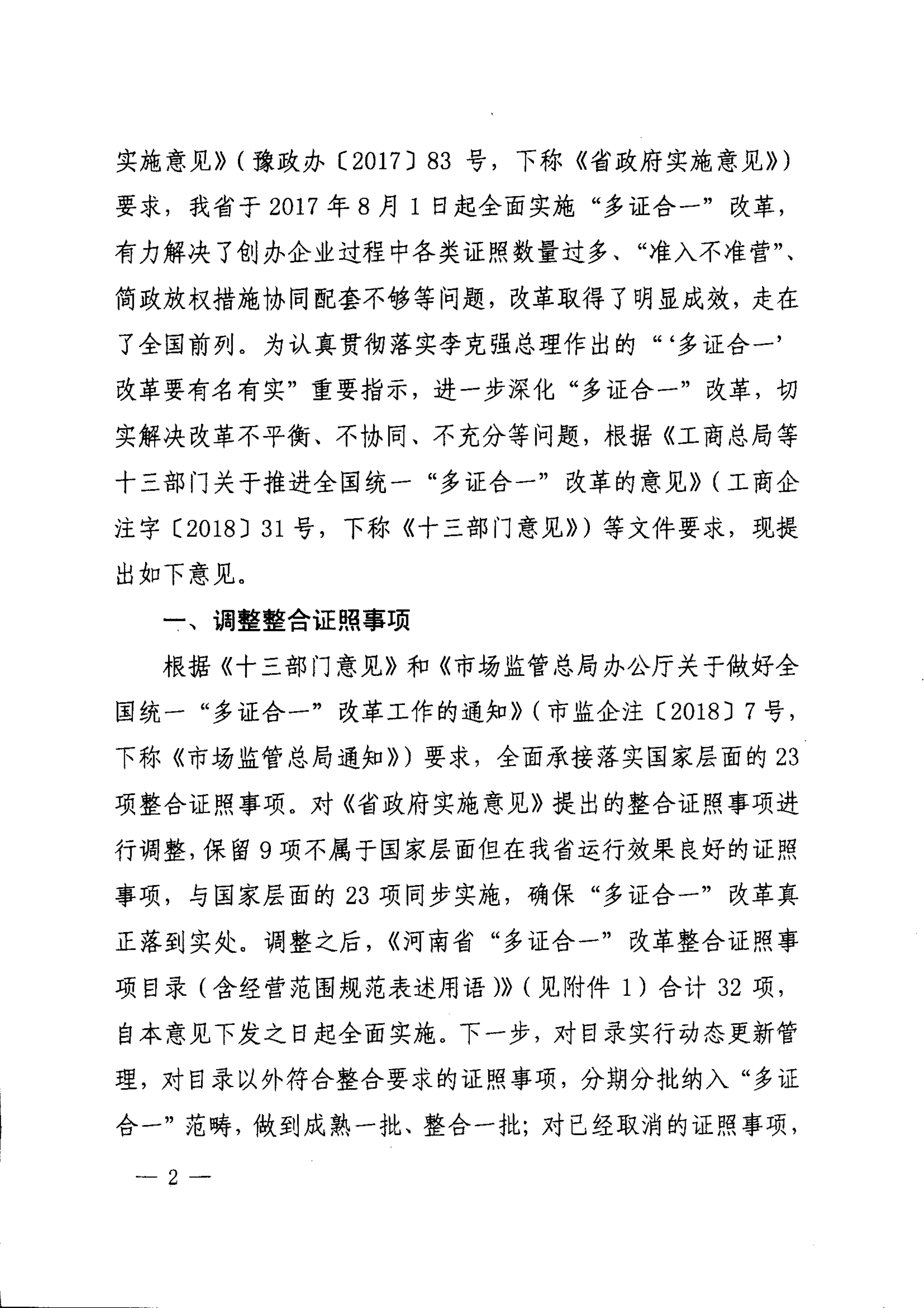 河南省15部门联合出台意见进一步深化“多证合一”改革
