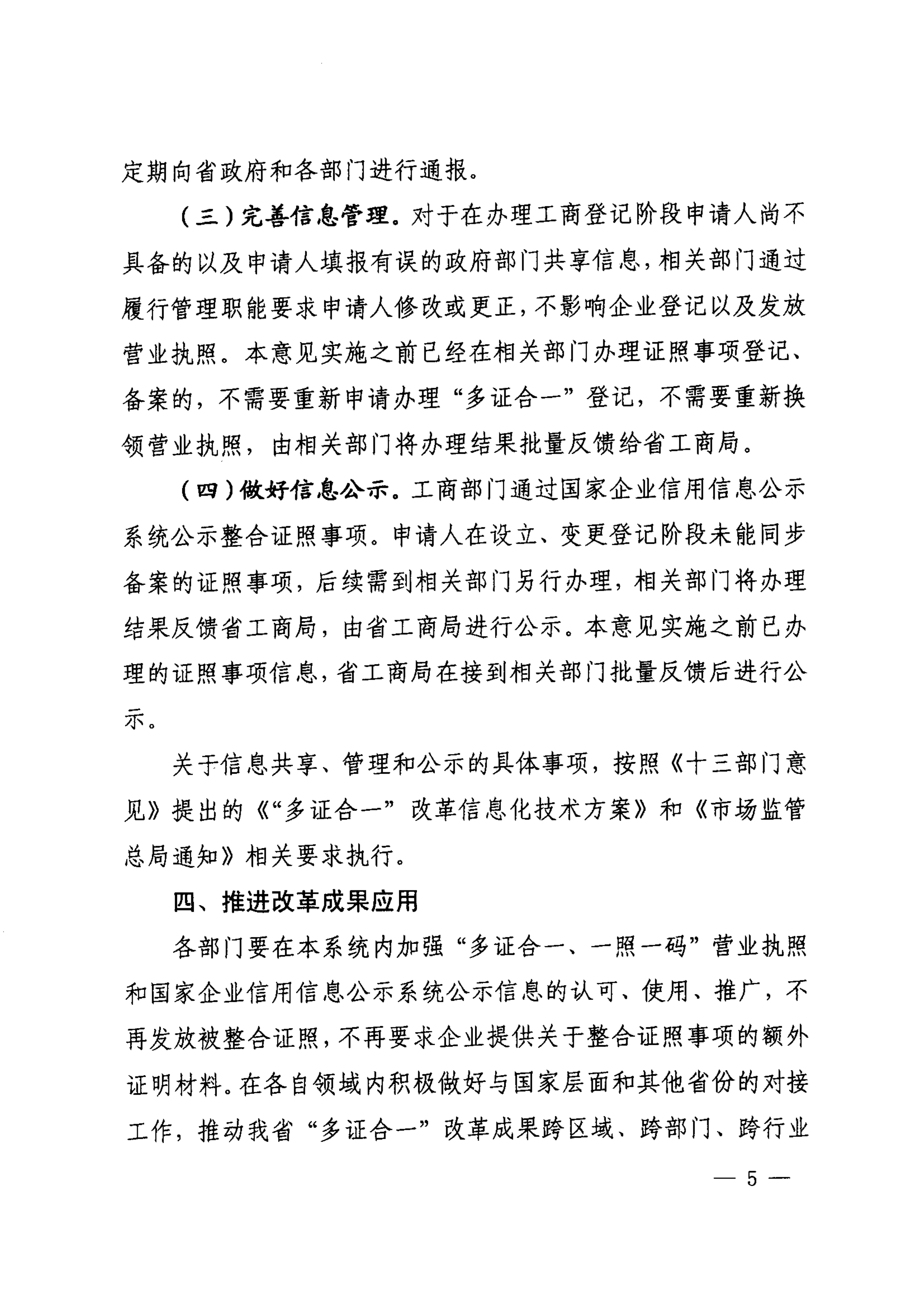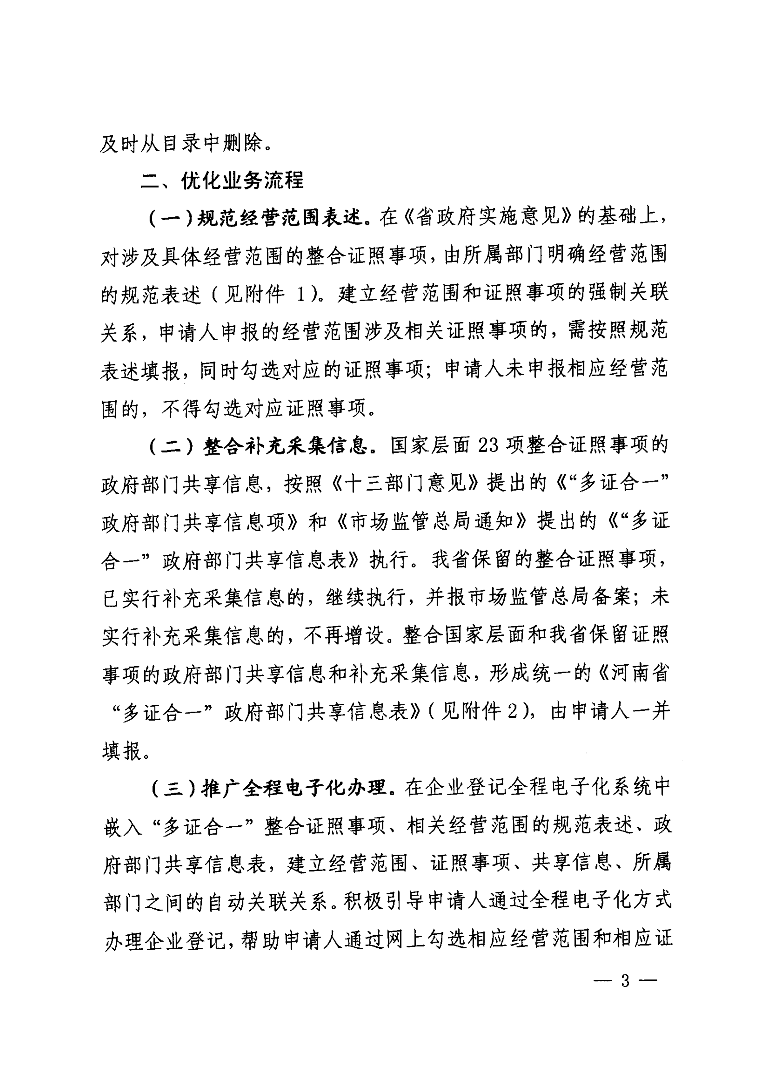 河南省工商局等十五部门关于进一步深化“多证合一”改革的实施意见