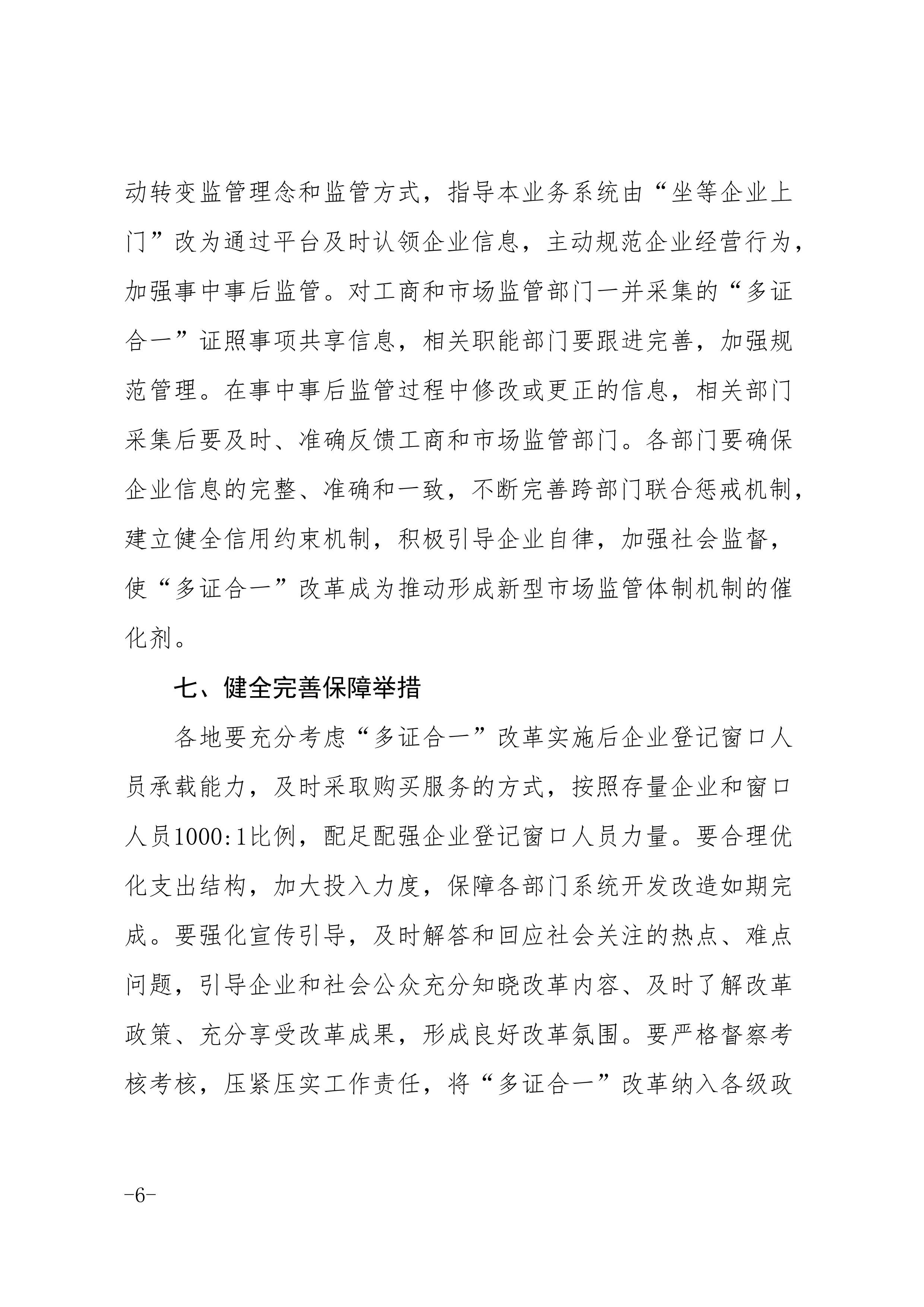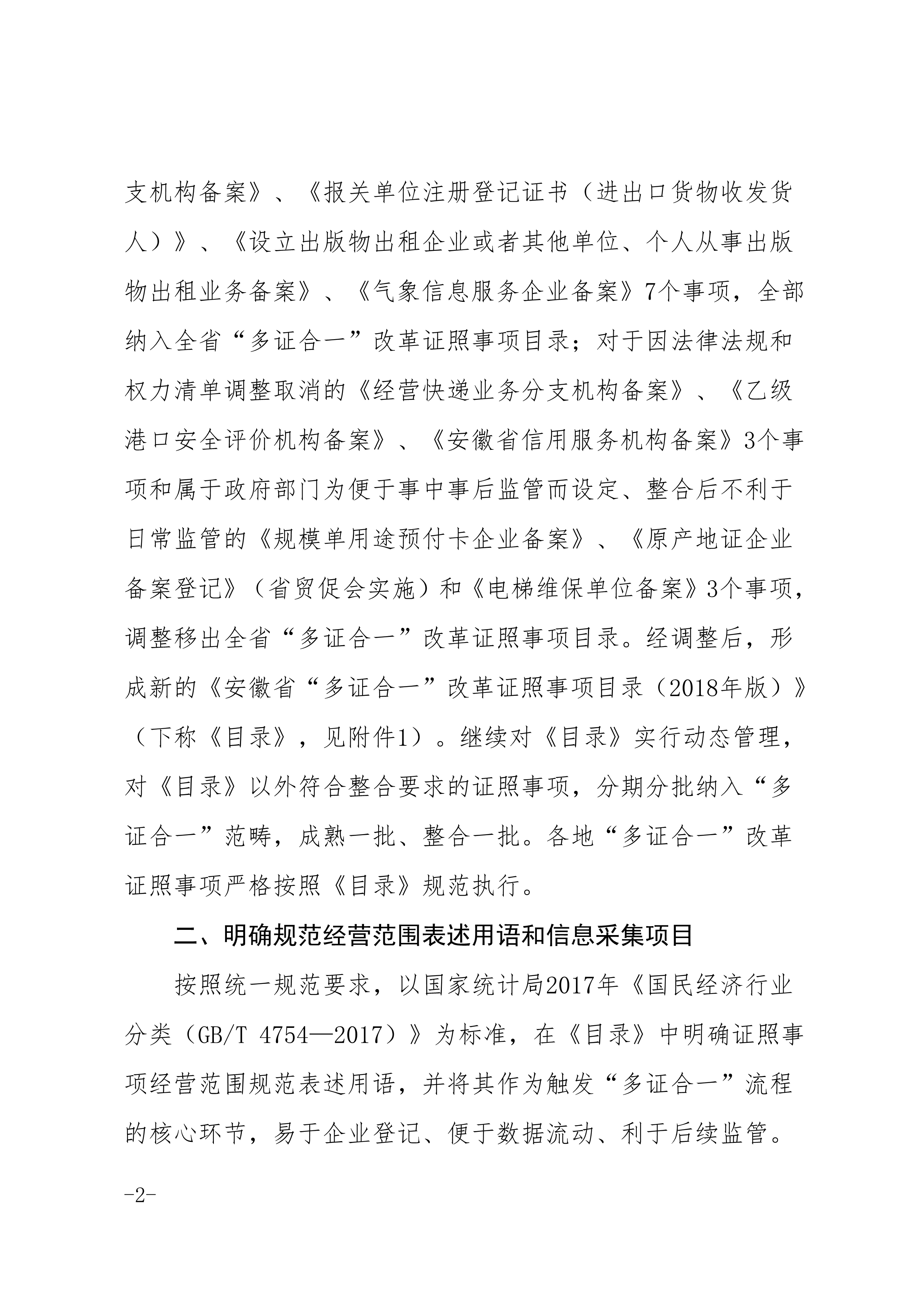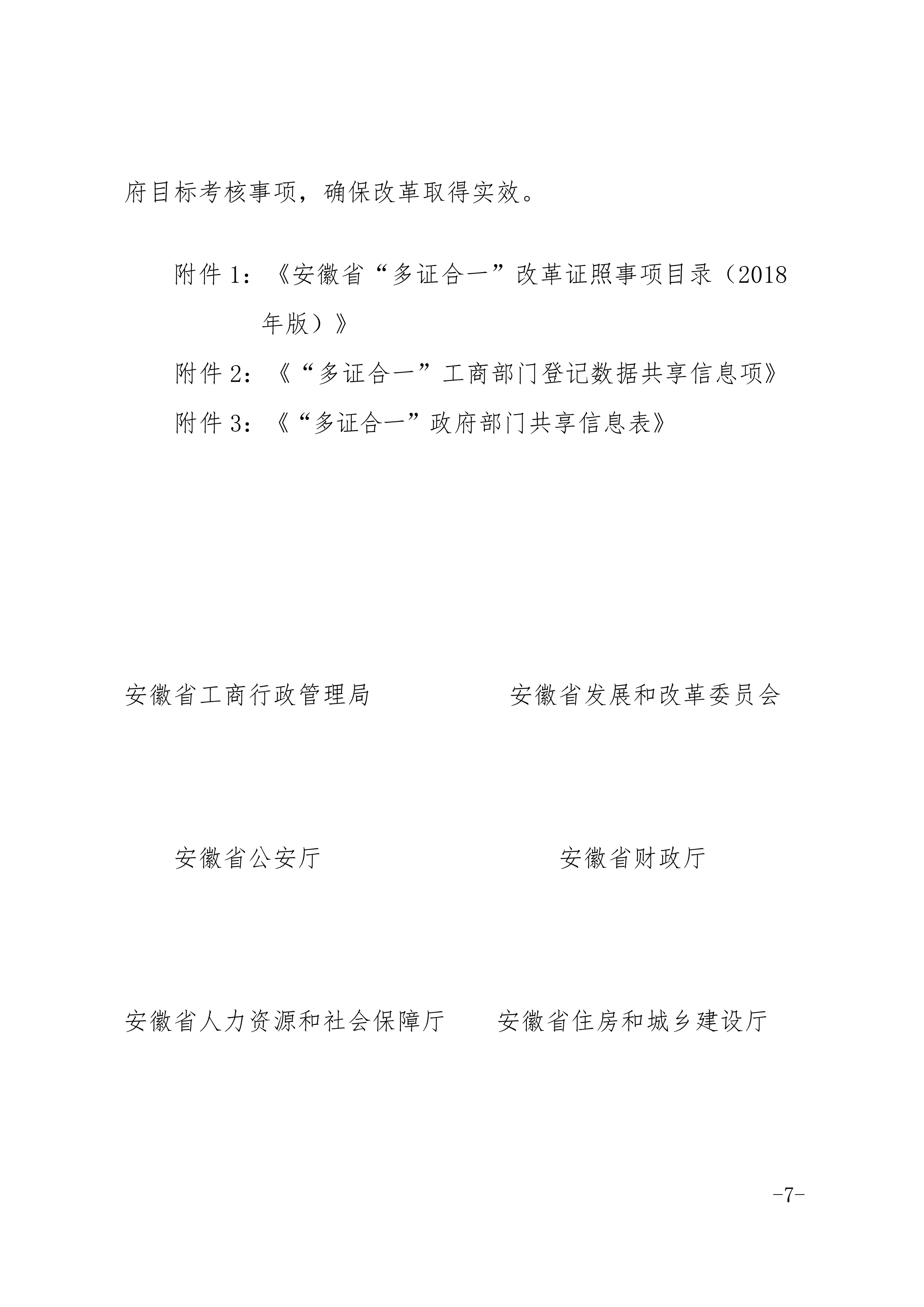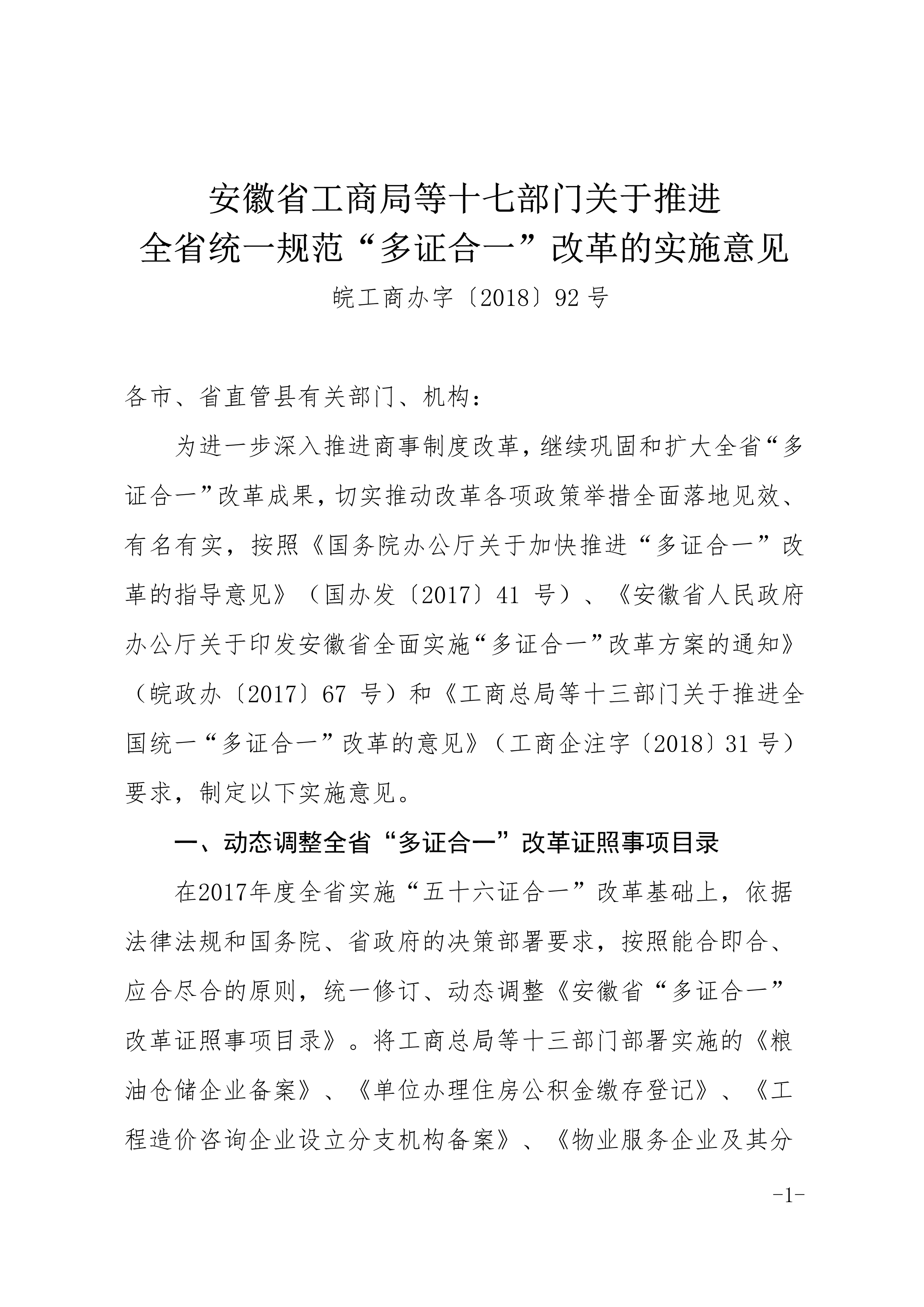 安徽省工商局等十七部门关于推进全省统一规范“多证合一”改革的实施意见