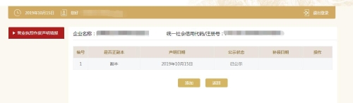 点击进去,选择添加,填写遗失的执照信息,保存并公示即可;