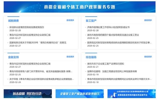 我省认真贯彻落实党中央、国务院及省委、省政府关于疫情防控的决策部署,充分发挥山东省“政务服务一网通办”总门户对疫情防控和复工复产中的全方位支持作用,及时在总门户推出“小微企业和个体工商户服务”专栏,聚焦惠企政策和利企办事服务,助力小微企业和个体工商户有序复工达产。