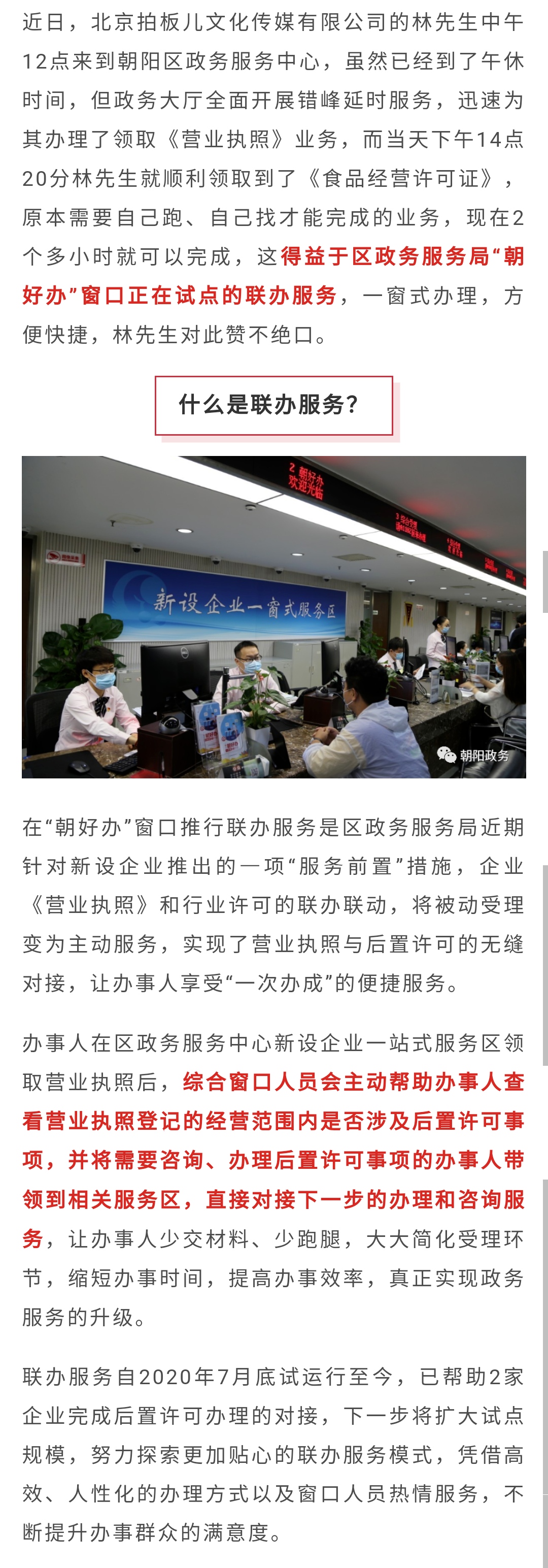 服务升级“朝好办”窗口《营业执照》和行业许可联办联动服务等你来体验