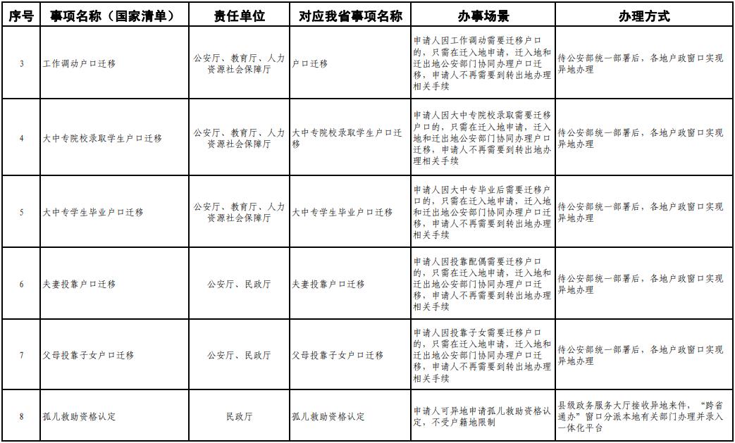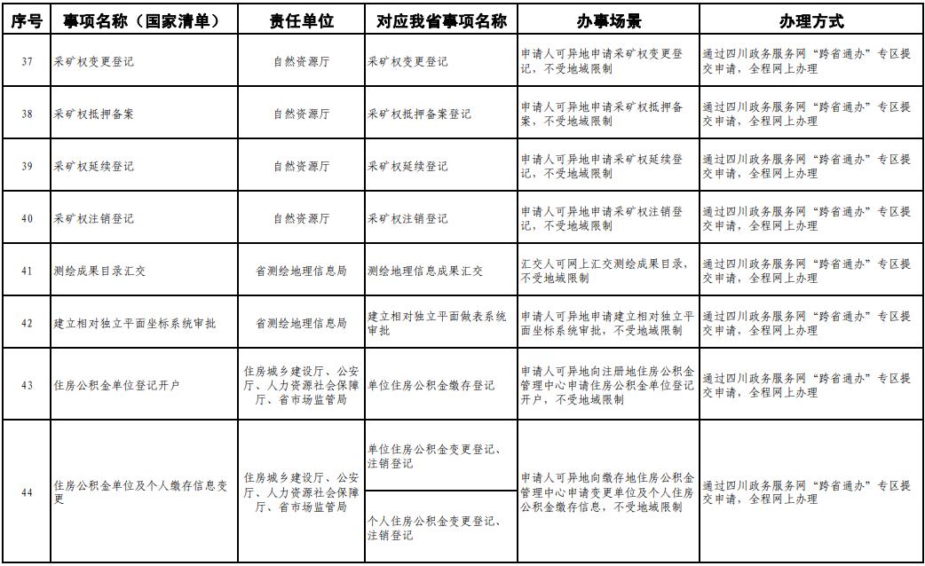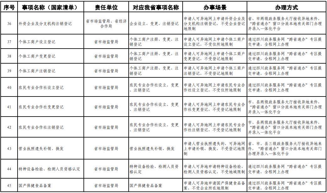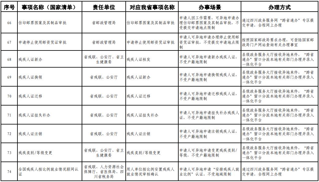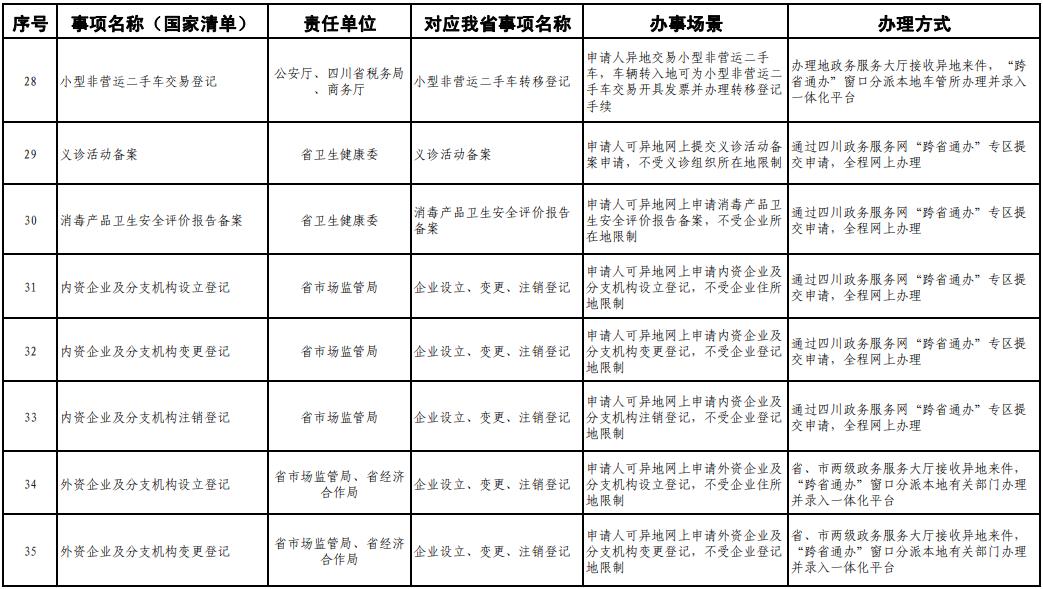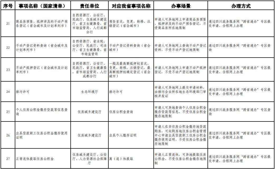 《工作方案》明确,按照《四川省政务服务“跨省通办”任务清单》,2020年底前实现第一批事项“跨省通办”,2021年底前基本实现高频政务服务事项“跨省通办”,并逐步纳入其他办事事项,有效满足各类市场主体和广大人民群众异地办事需求,为建设人民满意的服务型政府提供有力保障。