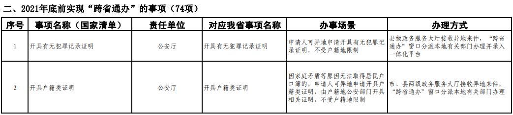 具体来看,在2020年底前,要实现第一批58项政务服务“跨省通办”,其中包括学历公证、失业登记、电子社会保障卡申领、不动产抵押登记等政务服务。在2021年底前基本实现74个高频政务服务事项“跨省通办”,包括开具无犯罪记录证明、户籍类证明、工作调动户口迁移等。2021年以后,包括新生儿入户、结婚登记、离婚登记等8项政务服务也将实现“跨省通办”。