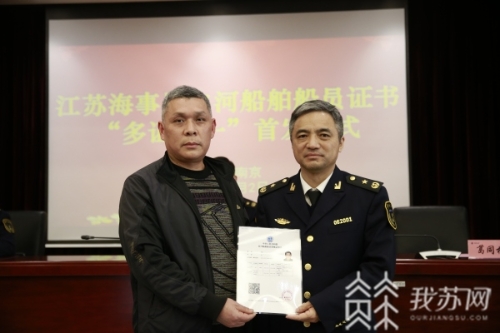 “江苏海事局作为全国内河船舶船员证书‘多证合一’改革唯一试点单位,既是落实党中央、国务院深化‘放管服’改革、优化营商环境决策部署的一项重大创新举措,也是海事部门主动作为、迈出‘减证便民’的重要一步。”江苏海事局相关负责人介绍。