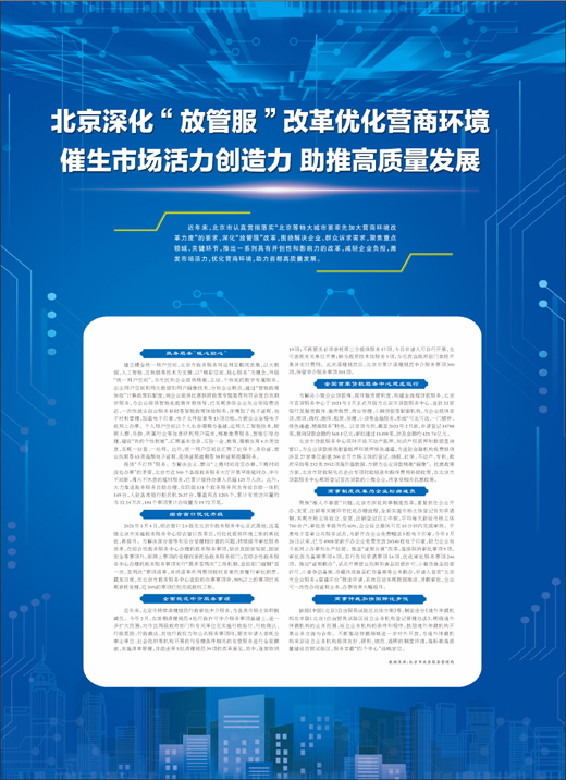 近年来,北京市认真贯彻落实“北京等特大城市要率先加大营商环境改革力度”的要求,深化“放管服”改革,围绕解决企业、群众诉求需求,聚焦重点领域、关键环节,推出一系列具有开创性和影响力的改革,减轻企业负担,激发市场活力,优化营商环境,助力首都高质量发展。