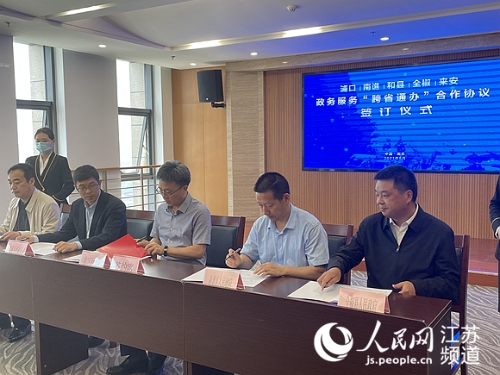 人民网南京5月18日电 (顾姝姝)为深入开展党史学习教育,坚持“问需于民”,着力解决企业、群众异地办事堵点痛点难点,18日,南京市浦口区与安徽省滁州市南谯区、全椒县、来安县和马鞍山市和县举办“跨省通办”政务服务战略合作协议签订仪式。这标志着五地在政务服务“跨省通办”工作上迈出了重要一步。通过就近申报、异地办理,这五地的企业和群众将能免去不少跨省奔波办事的烦恼。