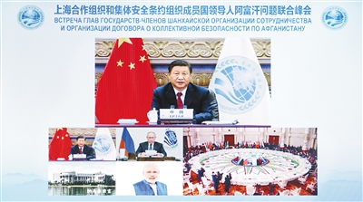 9月17日,国家主席习近平在北京以视频方式出席上海合作组织和集体安全条约组织成员国领导人阿富汗问题联合峰会并发表重要讲话。 |