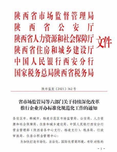 为持续深化改革,推行企业开办标准化规范化,不断提升我省企业开办服务质量和水平,按照《伟德娱乐手机客户端等六部门关于进一步加大改革力度不断提升企业开办服务水平的通知》(国市监注发〔2021〕2号)和《伟德娱乐手机客户端等六部门关于开展企业开办标准化规范化试点工作的通知》(国市监注发〔2021〕44号)文件精神,近日,陕西省市场监管局等六部门联合印发《关于持续深化改革推行企业开办标准化规范化工作的通知》(以下简称通知)。