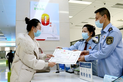 和邢永彬一样,金标农业发展有限公司负责人贾金玉也感受到企业开办服务的便利和舒心。“现在新办企业可以全程网上办,流程少、时间快,特别省心省力。由于首次办理,担心出错,我还是来到办税服务厅办理,税务人员耐心辅导我使用电子税务局进行了相关操作,特别顺畅。”贾金玉说。