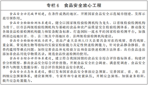 加强食品安全源头治理。加强食品全链条质量安全监管,推进食品安全放心工程建设攻坚行动,加大重点领域食品安全问题联合整治力度。提高粮食收储质量,防止不符合食品安全标准的粮食流入口粮市场和食品生产企业。加快制修订农药残留、兽药残留、重金属、食品污染物、致病性微生物等食品安全通用标准,推进产业发展和监管急需的食品安全基础标准、产品标准、标签标准、配套检验方法标准制修订,完善食品添加剂、食品相关产品等标准。加快食品相关标准样品研制。加强进口食品安全监管,严防输入型食品安全风险。实施农产品原产地追溯促进行动,打造追溯管理规范、市场机制成熟、带动能力强的农产品追溯标杆企业,推动全程追溯协作和示范推广。