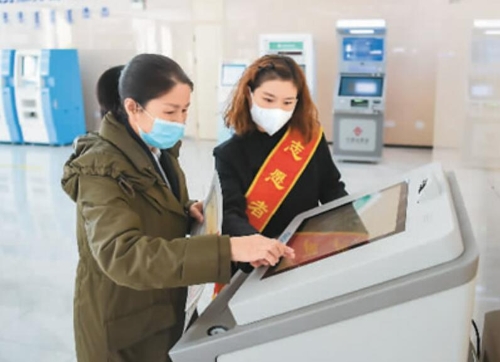 内蒙古自治区呼和浩特市玉泉区设置“24小时政务服务自助超市”,将包括税务、医保、社保、公积金、不动产登记等37项服务的自助终端一次性纳入。图为4月2日,一位市民正在打印营业执照。新华社记者 李志鹏摄