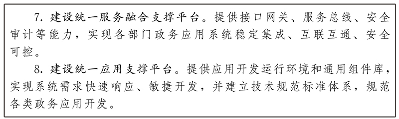 推进数字化共性应用集约化建设,为各地各部门提供身份认证、电子证照、电子印章、电子档案、便民支付、服务热线、服务融合等公共应用支撑。