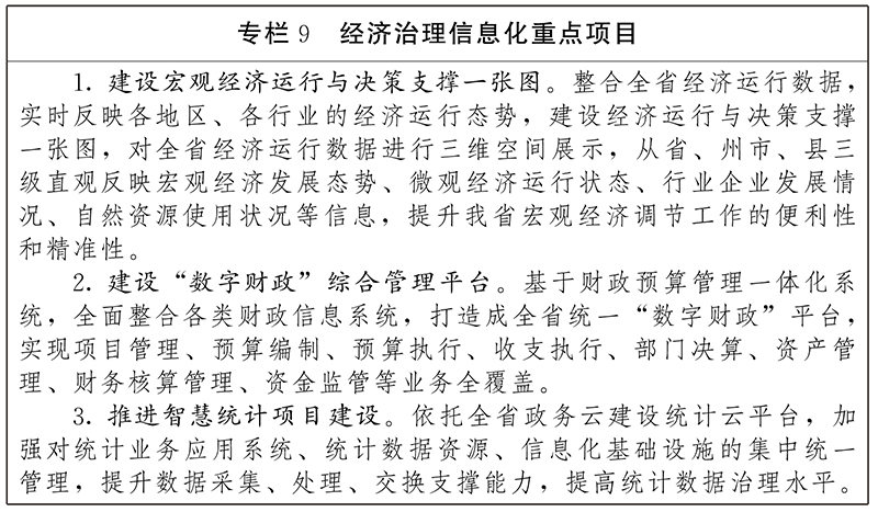 2. 完善经济运行监测分析体系。构建全省宏观经济、区域经济、行业经济等领域数字化分析系统,开展适合区域经济特点的指标体系、评价模型和算法模型研究。加强全省经济动态监测、趋势研判,对重点行业、重点区域、重点企业的运行状况进行监测分析。
