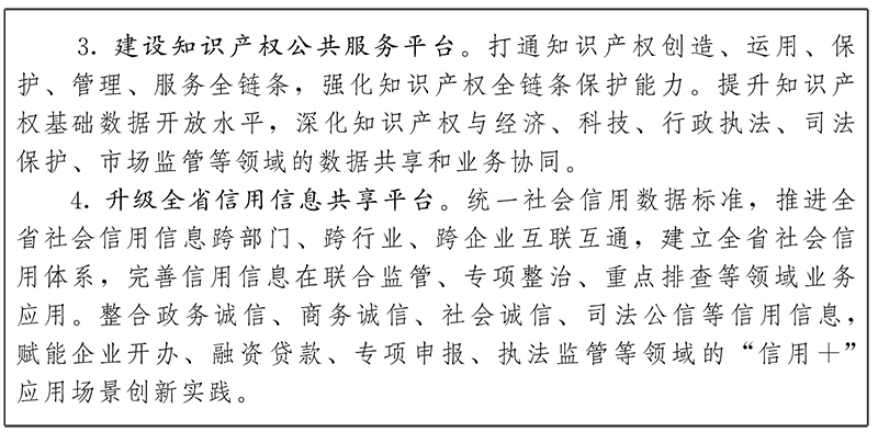 3. 推进信用信息在线监管。升级全省信用信息共享平台,实现信用信息“应归尽归”,完善信用异议在线申述的接收、处理、修复、反馈工作机制,推动跨地区、跨部门联合奖惩管理和业务协同。健全事前信用承诺、事中信用分类监管、事后守信激励和失信惩戒的新型监管机制。