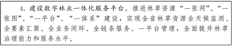 4. 构建“林草感知一张网”。聚焦资源管理、森林草原防火、有害生物防治和野生动植物监测,构建卫星遥感、低空巡航、视频监控、定点观测、地面巡护一体化的生态物联网综合监控体系,有力推进天空地人联动的“林草感知一张网”建设,不断提升林草资源监测能力。