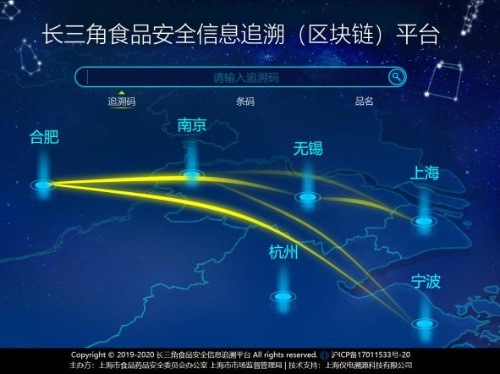 长三角食品安全信息追溯(区块链)平台,实现6大类10个品种食品及食用农产品追溯信息的互联共享,已接入追溯数据1.6亿条