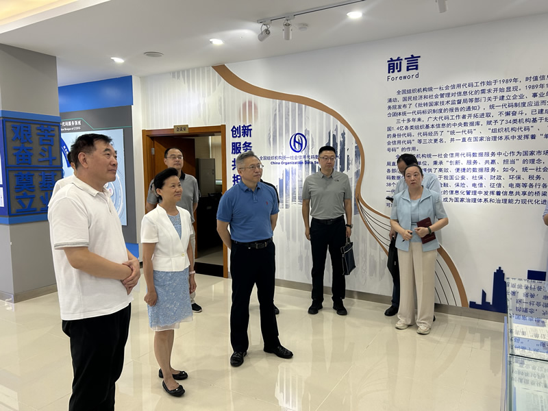 调研组参观了代码中心演示大厅,听取了统一社会信用代码大数据2.0服务平台和企业标准信息公共服务系统等相关系统平台的功能介绍。