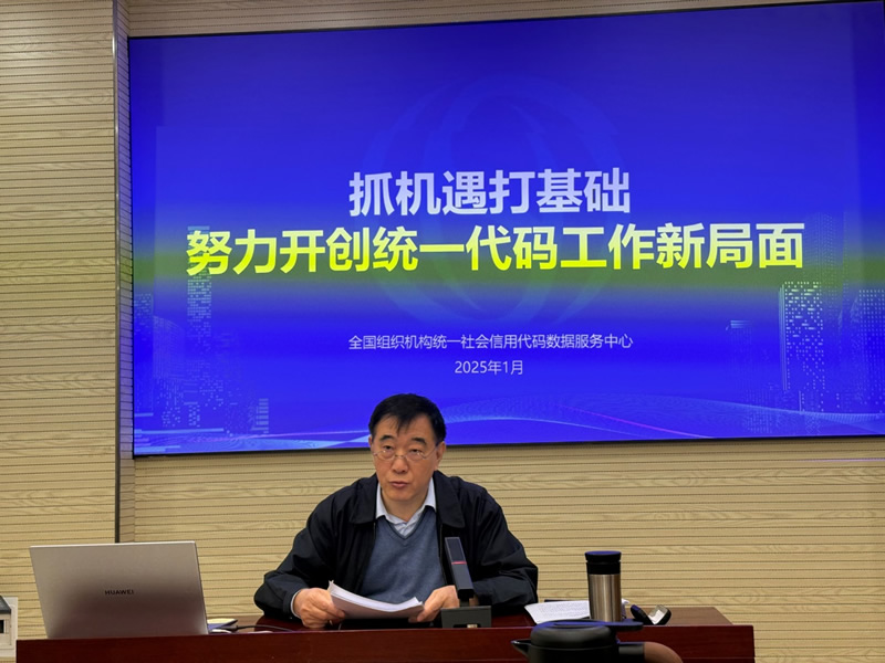 刘平安代表中心领导班子作了题为《抓机遇打基础努力开创统一代码工作新局面》的年度工作报告,全面总结了过去一年的工作成绩,分析了统一代码工作发展面临的新形势、新要求,部署了2025年重点工作任务。